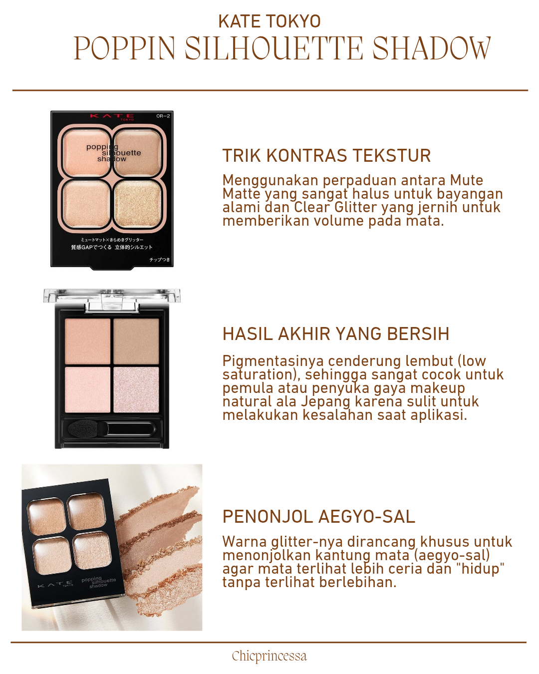 • Hasil Akhir yang Bersih: Pigmentasinya cenderung lembut (low saturation), sehingga sangat cocok untuk pemula atau penyuka gaya makeup natural ala Jepang karena sulit untuk melakukan kesalahan saat aplikasi.
