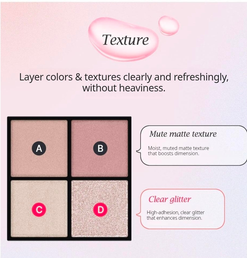 • Penonjol Aegyo-sal: Warna glitter-nya dirancang khusus untuk menonjolkan kantung mata (aegyo-sal) agar mata terlihat lebih ceria dan "hidup" tanpa terlihat berlebihan.